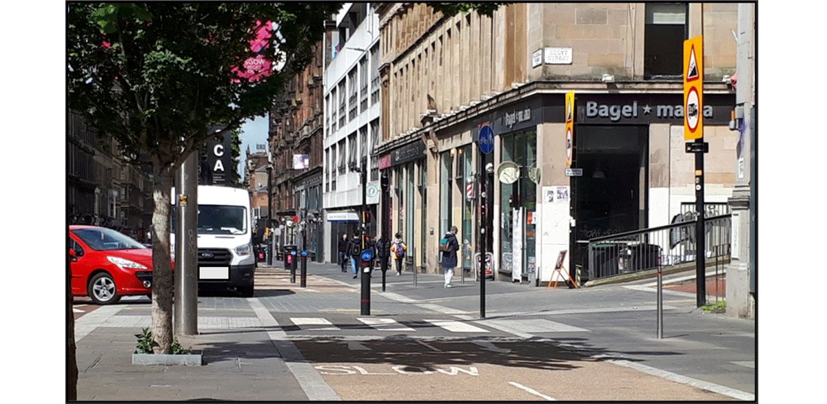 Figure 4 shows an example of the continuous footways introduced along Sauchiehall Street as part of the Avenues Programme.